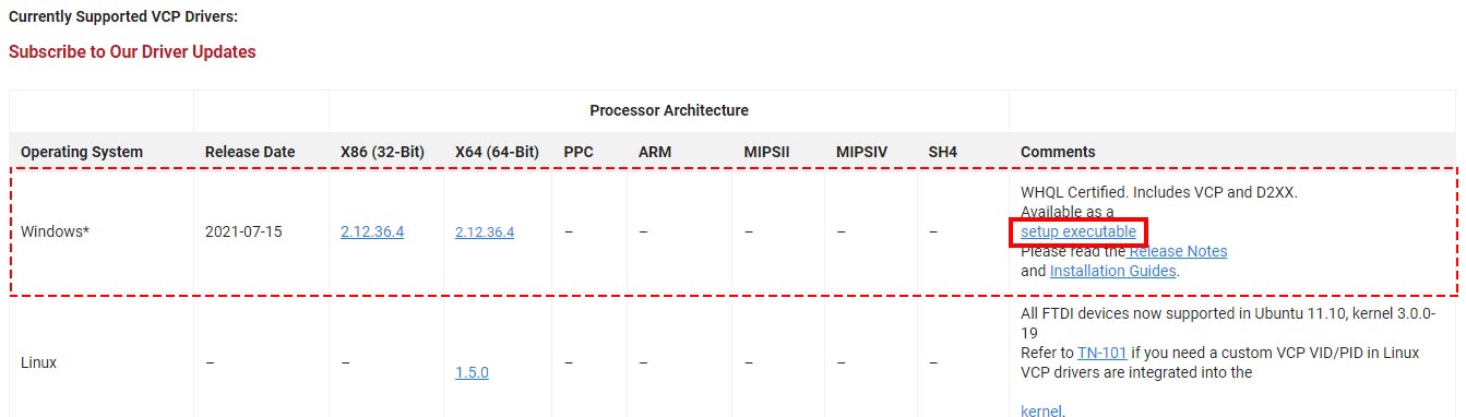 FTDI VCP Drivers:https://ftdichip.com/drivers/vcp-drivers/
