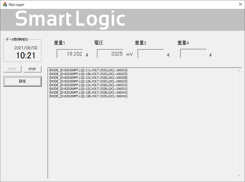使用方法:SLAW-BUEASYを接続したWindows PCでWpLogger.exeを起動することで受信したデータを表示・保存することができます。詳しい使い方は説明書をご覧ください。