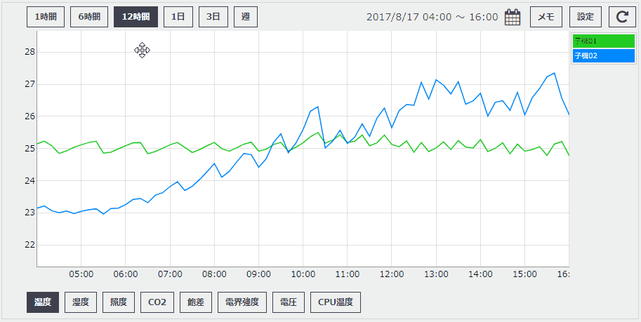 メモの入力中にグラフをダブルクリックすると、メモを入れる時刻を変更することができます。